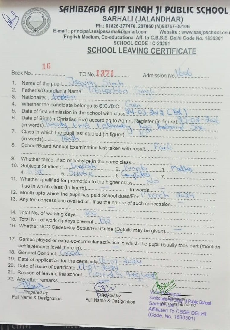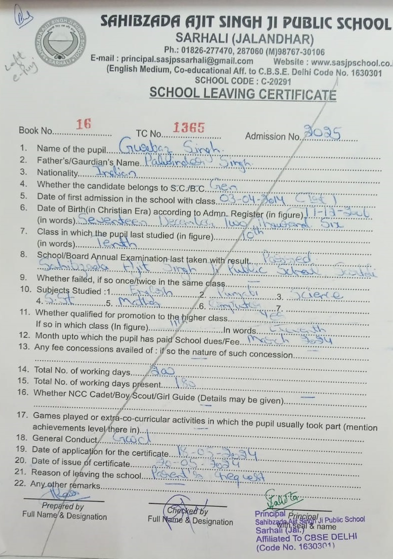 | 21 | Jagvir Singh | Tarlochan Singh | 10th | Download File |