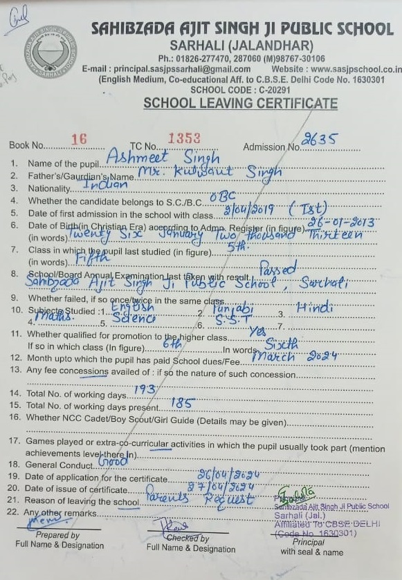 | 26 | Manreet Singh Kooner | Paramjit Singh | 12th | Download File |